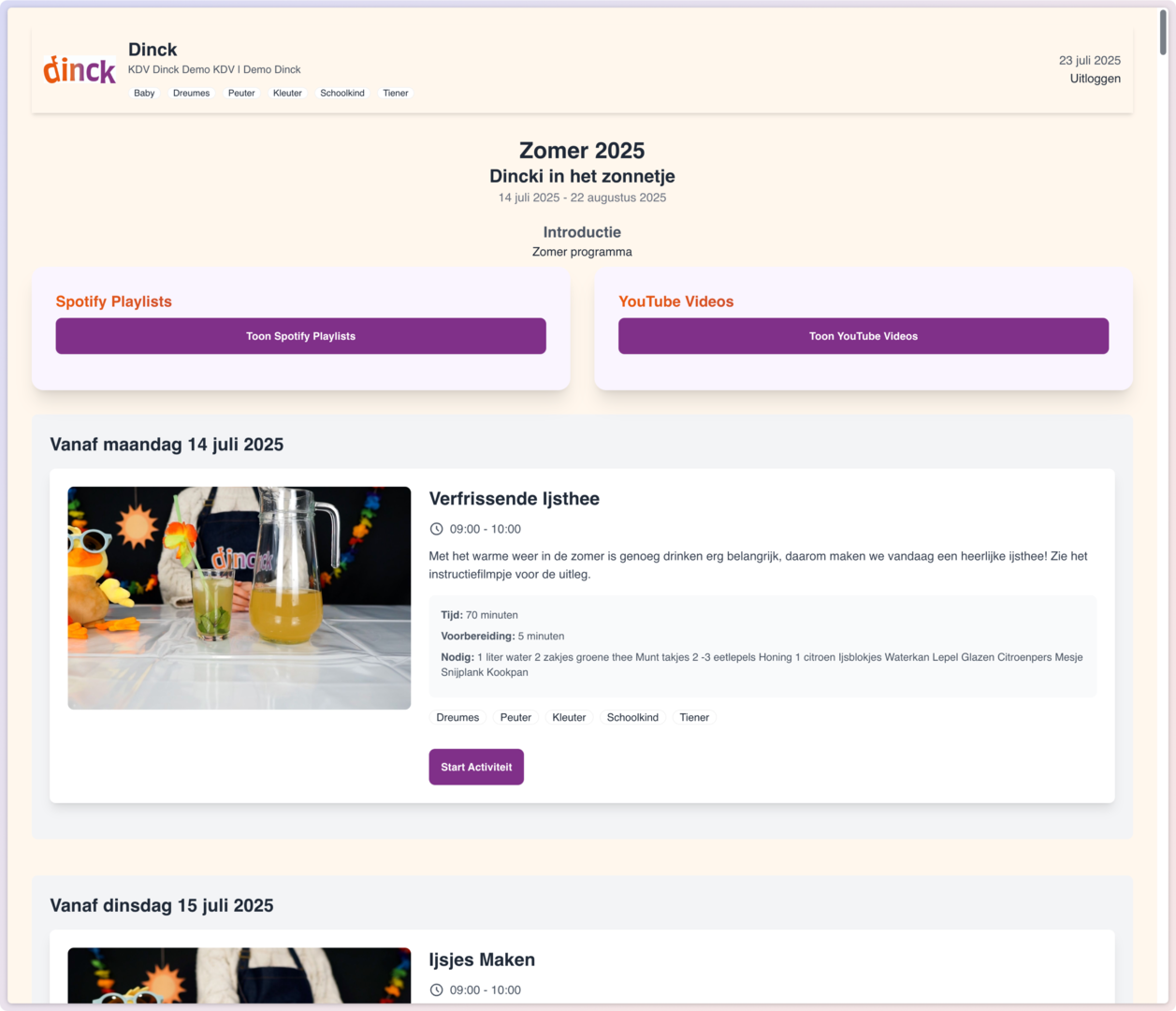 Op de groep zie je in 1 oogopslag wat de activiteiten zijn voor je dag, week of maand. Deze programma’s zijn gemaakt door jouw planner. Met korte instructiefilmpjes (nooit langer dan twee minuten) heb je snel de opzet en bedoeling van de activiteit helder.